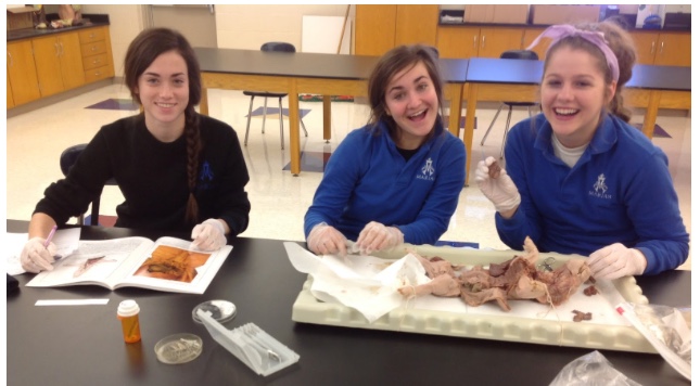 Marian used to dissect a variety of species including earthworms, grasshoppers, crayfish, perches and frogs. Sadly this was discontinued due to the Next Generation Science Standards (NGSS) updating their principles. However, fetal pigs have remained for use. According to Dr. Genoways, the animals are supplied by Nebraska Scientific.